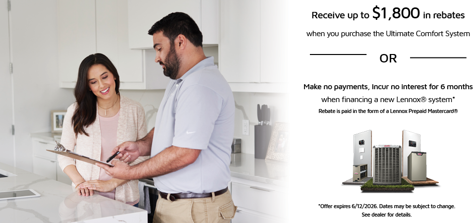 when you purchase the Lennox® Ultimate Comfort System™ OR make no payments for 6 months** when financing a new Lennox® system